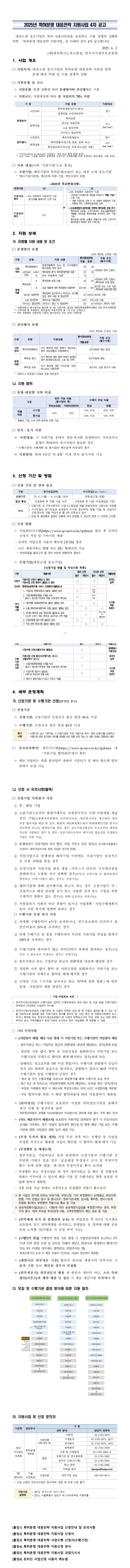 [대전연계_정기 4차] 2025년 특허분쟁 대응전략 지원사업 작성자관리자 작성일2025-06-02 조회수 335 첨부파일 [ 2 ] [공고문] 2025년 특허분쟁 대응전략 지원사업 4차공고_대전.pdf (282KB) 2025년 특허분쟁 대응전략 지원사업 공고문 붙임.zip (3,251KB)